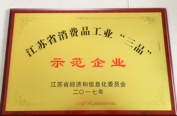 江蘇省消費品工業“三品”示范企業是由江蘇省經信委組織申報的項目,要求申報企業有較強的經濟實力和較好的經營業績,擁有省級以上商標或名牌產品,產品品種豐富,品質滿意度和品牌認可度高,產品品質好,主導產品市場占有率居同行業前列,對所在地區發展起到較好的示范帶動作用。