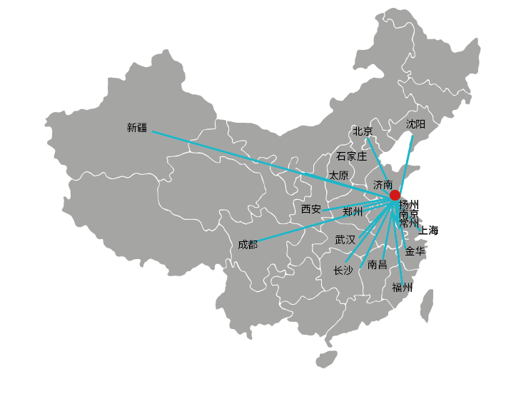 華東地區主要城市:濟南、上海、金華、合肥、福州、南昌、南京、揚州、常州