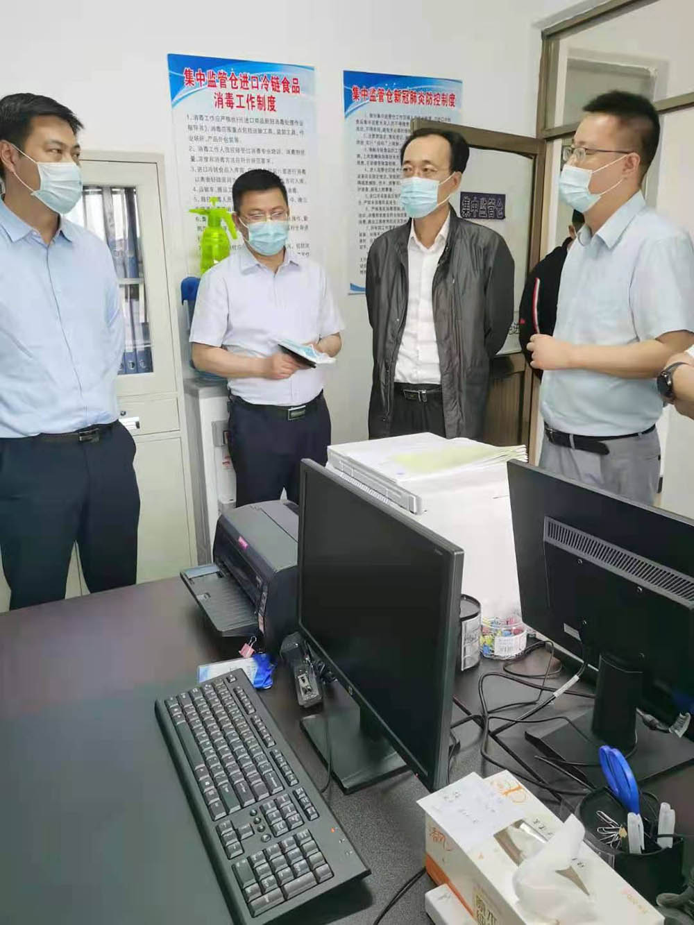 近期,副市長魏愛春等市級領導調研組一行至天緣物流集中監(jiān)管倉,現(xiàn)場聽取了相關工作匯報,了解集中倉運行半年以來各環(huán)節(jié)人員盡責履職情況。在獲知半年來監(jiān)管倉持續(xù)安全運行后,調研組指出,目前疫情在部分城市有了再次冒頭的跡象,冷鏈食品安全牽涉眾多,一線工作人員要有大局意識,時刻繃緊疫情防控警戒線,監(jiān)管倉的工作流程要嚴格按照規(guī)定保持全程閉環(huán),同時可追溯;專班監(jiān)督人員要以身作則,強化檢查力度,雙方積極協(xié)作將風險隱患降至最低,從而共同守護食品安全和市民健康。